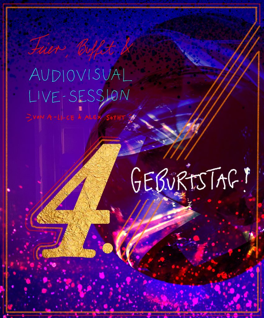 Kaum zu glauben! Aber sicher zu feiern: Mit improvisierter live-Session aus Visuals von A-li-ce und elektronischen Beats von Alex Sopht, mit guten Getränken und kleinem Buffet zu dem man herzlich gerne etwas beitragen kann.